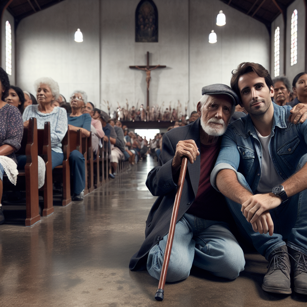 From the back of the church, an old man in his 80s, using a cane, was slowly making his way toward Bill. It took a long time for the old man to reach him. The church was silent except for the clicking of the cane. All eyes focused on him. The pastor could not preach the sermon until the old man got to where Bill was sitting on the floor. With great difficulty, he lowered himself next to Bill and put his arm around him so he would not be alone.