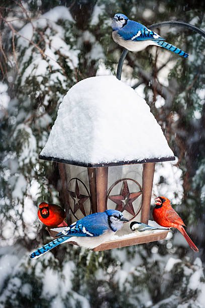 During winter, keep your feeders full of wild bird food blends that contain energy-rich foods such as sunflower seeds and nuts to help sustain them. Consider a heated birdbath so birds may enjoy a fresh source of water during freezing temperatures. Provide nest boxes so wild birds have a place to shelter and stay warm.